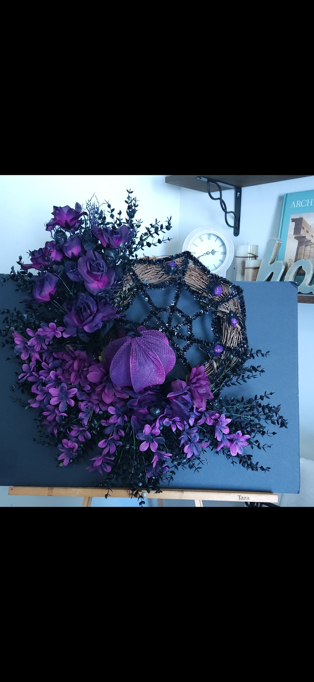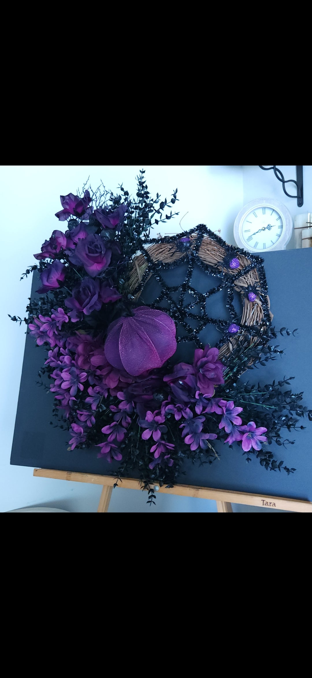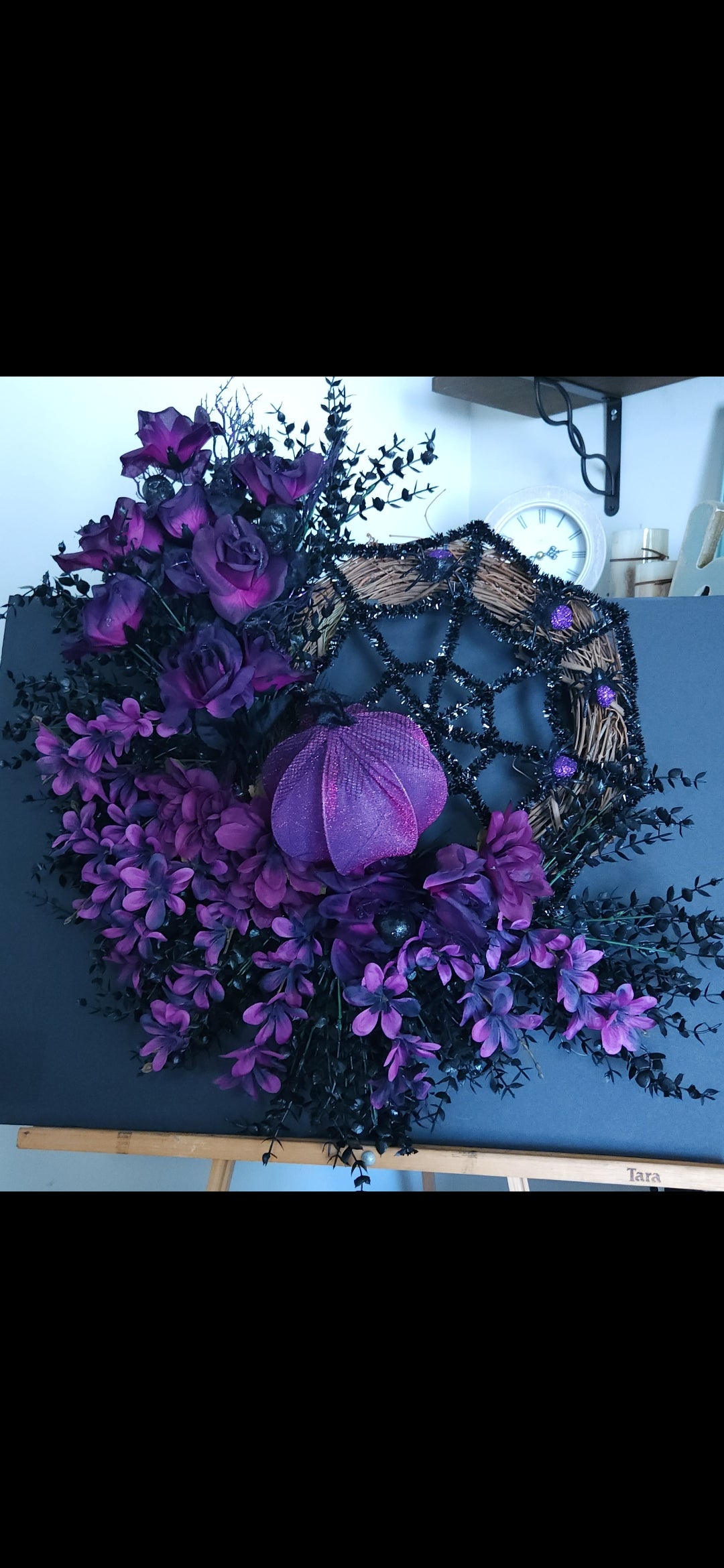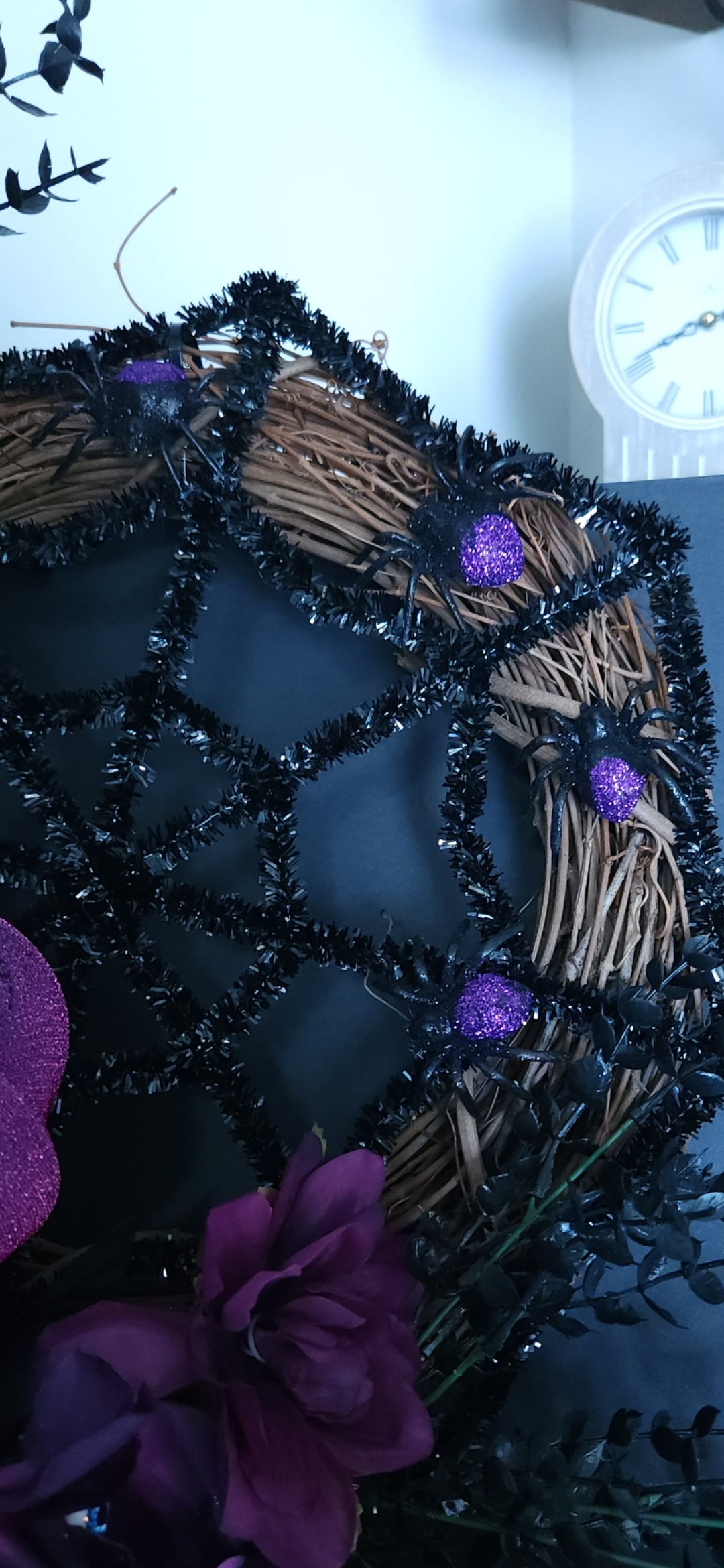 Add a touch of whimsy and magic to your door with Sparkling Magic! This stunning wreath features deep purple and black florals, glittery spiders in a spiderweb design, and sparkling pumpkin accents. Measuring 28x28 inches, it's sure to make a statement. (And yes, it's as fabulous as it sounds!)